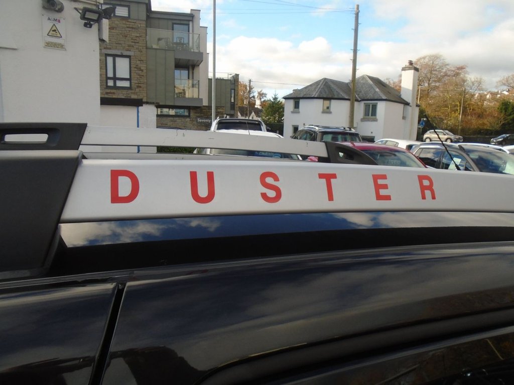 16in Alloy Wheels - Tyrol, 3-Point Rear Seatbelts x3, 3-Speed Front Windscreen Wipers, 4 X 20W FM-AM-DAB Tuner with Steering-Column Mounted Fingertip Controls, 7-Function On-Board Computer, Air Recirculation - 4-speed Heating and Ventilation, Air Vents - Chrome Surrounds, Airbags - Driver, Airbags - Front Passenger with Deactivation Function, Airbags - Front Side, Anti-lock Braking System - ABS and Emergency Brake Assist - EBA, ASR - Traction Control with ESC - Electronic Stability Control, AUX Input, Black Number Plate Surround with Satin Chrome Duster Inscription, Bluetooth Connectivity, Boot Light, Bumpers - Front and Rear Lower Section in Black, Bumpers - Front and Rear Upper Section - Body Coloured, Central Locking - Remote, Centre Console Fascia - Matt Black, Centre Console Surround - Dark Carbon, Child Locks in Rear Doors, Chrome Front Grille, Cruise Control and Speed Limiter, Decorative Inserts on Front and Rear Door Panels - Piano Black, Door Handles - Body Coloured, Door Mirrors - Grey - Dark Metal, Door Mirrors - Heated and Electrically Adjustable, Door Open - Visual and Audible Warning, Driver and Passenger Seatbelt Not Fastened - Visual and Audible Warning, DRL - Daytime Running Lights, ECO Mode, Electric Windows - Front, Electric Windows - Rear, Emergency Spare Wheel, Fabric Decorative Insert on Front and Rear Door Panels, Front Door Sill Protection Strip, Front Fog Lights, Front Passenger Reading Light, Front Seatbelt Pretensioners, Gear Lever Cap Insert - Satin Chrome, Gear Shift Indicator, Glovebox Light, Headlights - Double Optic, Headrests - Rear Height Adjustable x3, Heated Rear Window, Height-Adjustable Drivers Seat, Height-Adjustable Front Headrests, Height-Adjustable Front Seatbelts, Height-Adjustable Steering Wheel, High Level Third Brake Light, Instrument Dial Surrounds - Satin Chrome, Interior Door Handles - Satin Chrome, ISOFIX Points for Child Seats in Both Outer Rear Seats, Lower Steering Wheel Insert - Satin Chrome, Manual Air Conditioning, Map Pockets on Front Seatbacks, Pearl Black, Power Assisted Steering, Rear Passenger Reading Light, Rear Washer-Wipe, Rev Counter, Roof Bars - Longitudinal with Duster Inscription - Satin Chrome, Seats - 60-40 Split Folding Rear, Side Sills - Satin Chrome, Skid Plates - Front and Rear - Satin Chrome, Steering Wheel - Chrome Logo Surround, Steering Wheel - Leather, Sunvisor with Vanity Mirror - Passenger, Tailgate Trim with Duster Inscription - Black-Satin Chrome, Thatcham Approved Engine Immobiliser, Tinted Windows, Tyre Inflation Kit, Tyre Pressure Monitor, USB Connection for MP3 Players, Wheel Arch Mouldings
