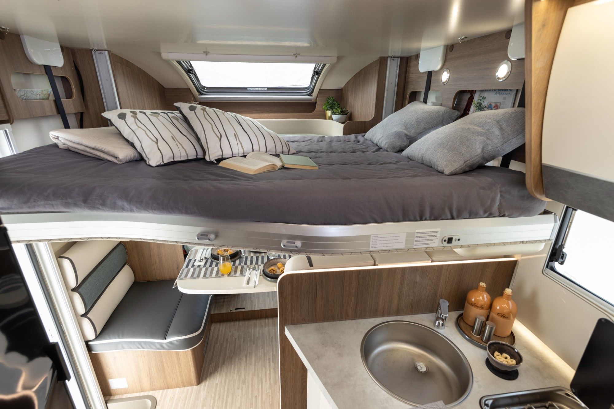 New for 2025 Elnagh from Calder Campers offers 4 different layouts / lengths all on the new Peugeot Boxer 140 BHP chassis. This Elnagh Baron 579 motorhome with 4 berths and 4 travelling seats. The layout consist of a front dinette with the extra two travelling belts, with the kitchen in the middle the van. It has the toilet separate to the shower across the van with a large island bed at the rear, which allows you to have a large garage underneath with access externally. This motorhome is equipped with a Cassette toilet, 2 burner gas hob, electric drop down bed. We offer a 3 year guarantee as standard on all used motorhomes FEATURES 2 Burner Gas Hob 3 Way Fridge Awning Light Cassette Toilet Driver & Pass Air Bags Electric Drop Down Bed Gas / Electric Heating Isofix seats Low Profile