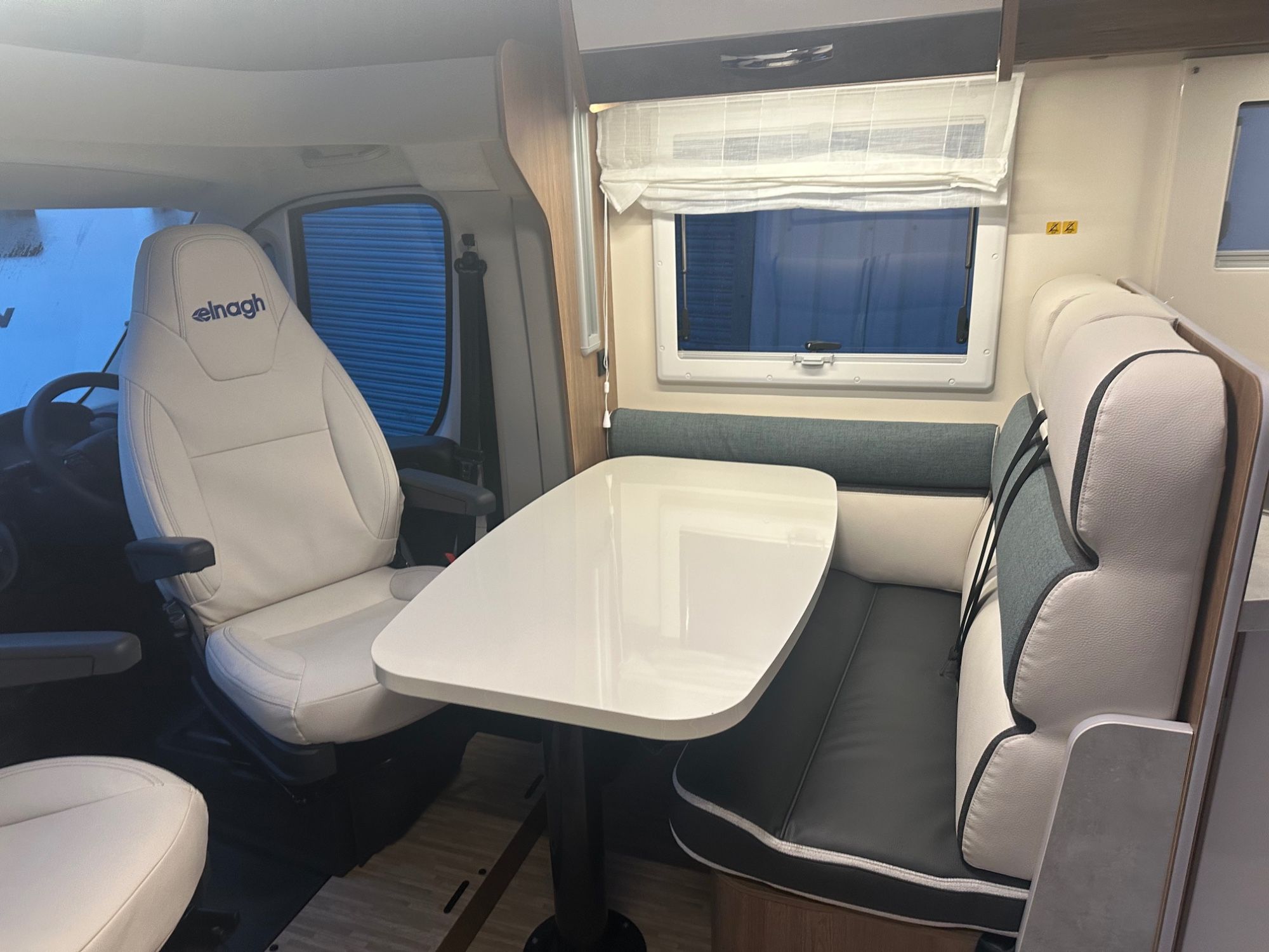 This Elnagh Baron 560 new motorhome is built on a Fiat chassis and comes with an automatic 140bhp engine with 4 berths and 4 travelling seats. The motorhome layout consists of a spacious fixed double bed with a garage underneath to the rear, a central bathroom and kitchen and a front seating area offering two rear travelling seats with ISOFIX and the added benefit of a multi positional drop down double bed to the front. This motorhome is equipped with cab air conditioning, ESP, ABS with Traction+ and Hill Descent and single key locking. 2026 UPGRADES INCLUDE: body colured bumpers, alloy wheels, pioneer infotainment system, revesing camera. STANDARD FEATURES: Fiat Ducato 140bhp Euro 6E manual 6 speed Engine Optional 140bhp fully automatic engine 90 litre fuel tank 3500kg chassis as standard with optional 3650kg offering an increased payload NCC approval & full UK specification ESP, ABS with Traction+ and Hill descent Front Fog Lights Fix & Go Tyre Repair kit Isofix fitting on rear forward facing seats Daytime running lights Cruise control & speed limiter Cab air conditioning Engine Immobilser Single key central locking for cabin body Driver and passenger airbags Electric cab door windows & adjustable wing mirrors 12v socket & USB/C points Driver and passenger swivel seats with armrest Power assisted steering Tyre Pressure Monitoring System Media function controls on steering wheel We can offer great pricing on: bike racks, awnigs, solar, TVs, Fogstar Litium, and much more!