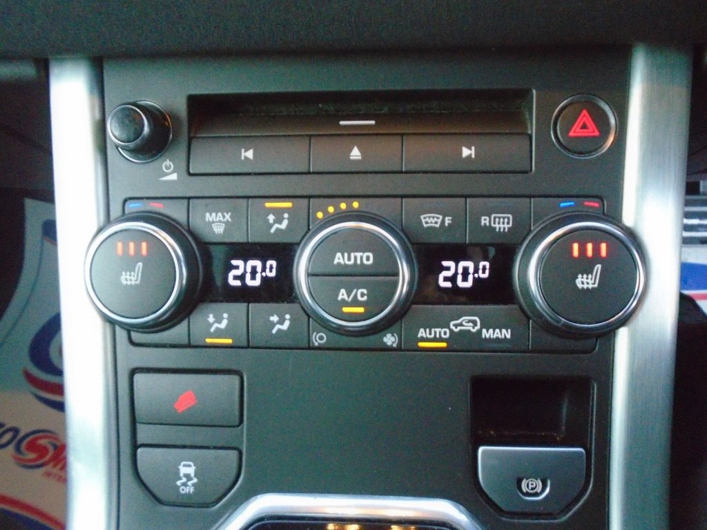 10 Speakers, 20in Alloy Sport Style 6 - Sparkle Silver, 20in Alloy Sport Style 7 - Chrome Shadow, 3.5mm Stereo Auxiliary Input Socket, 380W Meridian Surround Sound System, 5in TFT Driver Information Centre, 8in High Resolution Touch Screen, ABS - Anti Lock Braking System, Adaptive Dynamics, Aeroflip Attachment For Rear Spoiler, Airbags - Driver Knee, Airbags - full length curtain, Airbags - Full Size Driver, Airbags - Full Size Passenger, Alarm System - Volumetric, Aluminium Pedal Finisher Kit, Armrest - Rear Centre with Storage Compartment and 2 Cupholders, Audible Seat Belt Warning, Audio Connectivity System, Audio System - 380 Watt Meridian Sound System with Radio and Single Slot CD, Audio System - DAB, Automatic Headlight Levelling, Automatic Headlights, Auxiliary Heater - Electrical Positive Temperature Coefficient, Auxillary Power Sockets - front-rear and load space, Auxillary Power Sockets - Rear and Load Space, Bluetooth Telephone Connectivity, Bonnet louvres in Narvik Black, Carpet Mats with Edging, Centre console - Covered Storage Compartment, Climate Control - Automatic with Air Filtration, Cornering Lights, Cruise Control, Cupholders x2, Door Mirrors - Electrically Adjustable - Heated and Power Folding with Memory Function, DSC - Dynamic Stability Control, Dynamic Exhaust, Dynamic Front Bumper, Dynamic grille in Narvik Black, Dynamic Perforated Leather Steering Wheel, Dynamic Rear Bumper, Dynamic Side Sills, EBA - Emergency Brake Assist, EBD - Electronic Brake-Force Distribution, EDC - Engine Drag Torque Control, Electric drivers and passenger seat adjustment, EPAS - Electronic Power Assisted Steering, EPB - Electronic Park Brake, Evoque Badge in Red, Exterior mirror caps in Narvik black, Exterior Mirrors - Auto Dipping in Reverse Gear, Front Fog Lights, Glass - Privacy - Rear of B Post, Global opening for windows - windows open via remote key, Hazard Warning Lights Under Heavy Braking, HDC - Hill Descent Control, HDD Premium Navigation with Touch Screen, Headlight Power Wash, Headlining - Ebony Morzine, Heated Front Seats, HSA - Hill Start Assist, Illuminated tread plates, Illumination - Footwell, Illumination - Front Header Cour with delay Theatre dimming + Maplights, Illumination - Glovebox, Illumination - Load Compartment Light, Illumination - White Lighting in door release and over head console downlighter, Interior Mood Lighting, ISOFIX Child Seat Anchor Points, Land Rover - Tyre Repair System, Leather Gear Knob, Light Pipe with Controllable Colour and Intensity x2 - LED, Locking Wheel Nuts, Luggage Compartment - Anchor Points, Luggage Cover, Lumbar Support, Memory and electric passengers recline, MP3 disc and file compatibility, Parking Aid - Front, Parking Aid - Rear, Parking Aid - Rear View Camera, Proximity Sensing and Touch Detection For Overhead Map Lights, Push Button Start, Rain Sensing Windscreen Wipers, Range Rover Smart Key Controls - Remote lock-Unlock-Double Lock-Lights on Tailgate Open, Rear spoiler, Remote Central Locking, RSC - Roll Stability Control, Seats - 60/40 Split, Seats - Rear Centre Head Restraint, Side Fender Blade Grille and Tailgate Finisher in Narvik black, Side sill mouldings, Smokers Pack - Ashtray and Cigar Lighter, Solar Attenuating Glass - Qtr Light and Rear Windscreen, Steering Column - Manual For Height and Reach Adjustment, Steering Wheel - Heated, Steering Wheel Mounted Audio Controls, Subwoofer, Sun Visors - Illuminated Vanity Mirrors, TCS - Traction Control System, Terrain Response, Textured aluminium centre console finisher and textured aluminium IP finisher, TMC - Dynamic route guidance, TSA - Trailer Stability Assist, USB Connectivity, Voice Control - Say What You See, Waist finisher - High Gloss Black, Windows - Electric Front, Windows - Heated Rear Windscreen, Windscreen - Heated, Windscreen Washer Jets - Heated, Xenon Headlamps with LED Signature