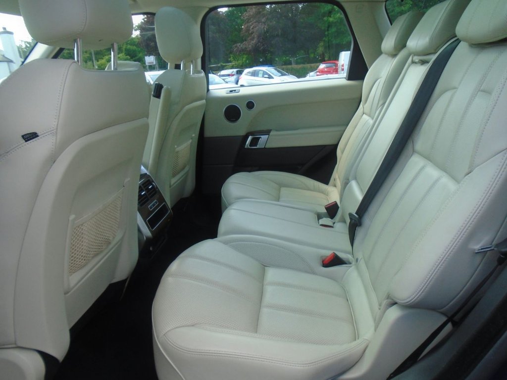 12V Power Socket, 12V Power Socket in Second Row, 12V Socket in Loadspace, 2-Zone Automatic Climate Control, 20in Alloy Wheels - 5 Split Spoke Style 520, 60-40 Folding Rear Seats, 60-40 Folding Rear Seats with Load Through, 8in Touch Screen, ABS - Anti Lock Braking System, Acoustic Laminated Windscreen, Active Vanes, Adaptive Dynamics, Adaptive Xenon Headlamps with LED Signature Lighting - Automatic Headlamp Levelling and Headlamp Powerwash, Adjustable Front Head Restraints, Adjustable Speed Limiter Device, Airbags - Curtain, Airbags - Driver, Airbags - Front Passenger, Airbags - Front Seat Thorax and Pelvis, Airbags - Front Side, Aluminium Treadplates with Range Rover Lettering, Auto Dimming Rear View Mirror, Auxiliary Points - Front, Bluetooth Audio Streaming, Bluetooth Phone Connection, Body Coloured Roof, Bright Twin Tailpipes, Carpet Mats - Front and Rear, CBC - Cornering Brake Control, Centre Armrest with Cubby Box, Centre High Mounted Stop Light, Cruise Control, Customer Configurable Autolock - Doors Lock on Driveaway, Customer Configurable Single Point Entry, DAB - Digital Audio Broadcast, Door Mirrors - Body Coloured, Door Mirrors - Power Adjustable-Heated-Power Fold with Approach Lights, Driver and Passenger Sunvisor with Illuminated Vanity Mirror, DSC - Dynamic Stability Control, EBA - Electronic Brake Assist, EBD - Electronic Brake-Force Distribution, Electric Parking Brake, Electrical Towing Preparation, EPAS - Speed Proportional Electric Power Assisted Steering, ETC - Electronic Traction Control, FCAS - Four Corner Air Suspension, Follow Me Home Lighting, Four-Zone Climate Control, Front and Rear Grab Handles, Front and Rear Recovery Hooks, Front Cupholders, Front Door Mini Stowage Pocket with Rubber Mat, Front Fog Lights, Gradient Acceleration Control - GAC, GRC - Gradient Release Control, Hazard Warning Lights Under Heavy Braking, HDC - Hill Descent Control, Headlight Powerwash, Headlights - Xenon with LED Signature, Headlining - Alston - Ivory, Headlining - Morzine - Cirrus, Headrestraints - Rear with Manual 2 Way Adjust, Heated Front Seats, HomeLink - Garage Door Opener, HSE Badge, InControl Protect - 3 Year Subscription, InControl Secure - 3 Year Subscription, Interior Mood Lighting, Interior Trim Differential - TL3 - 5 Colour Themes, ISOFIX Child Seat Fixings x2, Keyless Entry, Laminated Hydrophobic Front Door - Toughened Rear Door and Quarter Light Glass, Leather Heated Steering Wheel, LED Front Signature Lights, Load Compartment Light, Loadspace Mounting Provisions, Locking Wheel Nuts, Loire Blue, Map Pockets - Rear of Front Seats, Map Reading Lights - Front, Meridian Surround Sound System 825W, Metal Roof, Non Smokers Pack, Non-Branded Brake Calipers, Paddle Shift, Painted Side Sills and Bumpers, Parking Aid - Front, Parking Aid - Rear View Camera, Pollen Filter, Power Operated Child Locks, Power Tailgate - Single Piece, Push Button Start, Rain Sensing Windscreen Wipers, Range Rover Audio System 250w, Reactive Grounding Response, Rear Cupholders, Rear Lights - LED, Rear Parking Aid with Visual Display, Reduced Section Spare Wheel, Roller Loadspace Cover, Roof - Fixed Panoramic, Roof Rack Mounting Provisions-Blanking Plugs, RSC - Roll Stability Control, Satellite Navigation System - HDD, SDV6 Badge, Seats - 4-Way Lumbar Support, Seats - Driver Height Adjustable, Seats - Driver Memory, Seats - Front Passenger Memory, Seats - Front Style 3, Seats - Heated Rear, Seats - Passenger Height Adjustable, Seats - Perforated Leather, Seats - Powered Driver Seat - 16-way, Seats - Powered Passenger Seat - 16-way, Secure Glove Box Stowage, Side Repeater Indicators in Mirror, Single Speed Transfer Box - High Range Only, Speakers x8, SPORT Badge in Silver, Steering Column - Electric Tilt - Reach and Rake Adjustable, Steering Wheel - Leather, Steering Wheel - Multi-Function Controls, Steering Wheel Airbag-Ebony - Door Top Roll-Lunar - Door Armrest-Lunar - Door Main-Ebony - Seat Hardware-Ebony - Parcel Shelf-Ebony - Seat Belts-Ebony - Carpet-Ebony, Steering Wheel Rim - Ebony, Tailgate - Handsfree Powered Electrical Tailgate, Tailgate - Powered Electrical Tailgate, Terrain Response, TFT Virtual Instrument Panel, Tilt Sensor, TL3 Exterior Differentiation, TPMS - Tyre Pressure Monitoring System, Trailer Stability Control, Trim Finisher - Micro Mesh Aluminium, Trip Computer, TV - Digital, USB Socket - Front, Voice Control - Navigation, Volumetric Alarm, Windows - Electric Front and Rear with Global Close, Windscreen - Heated, Windscreen Washer Jets - Heated