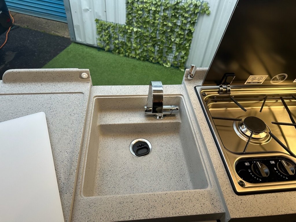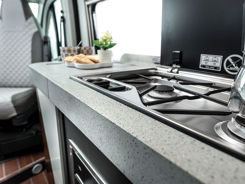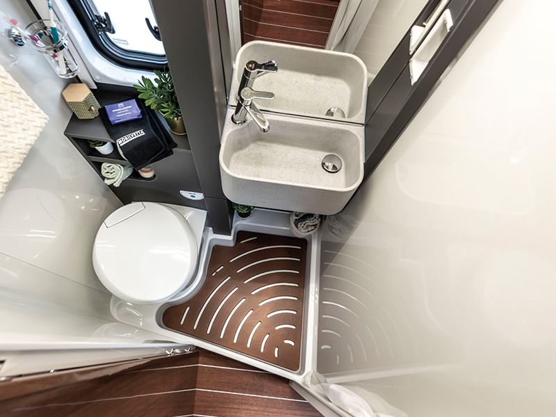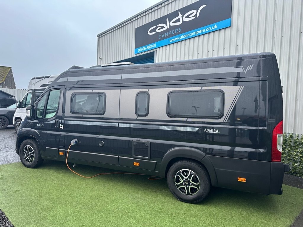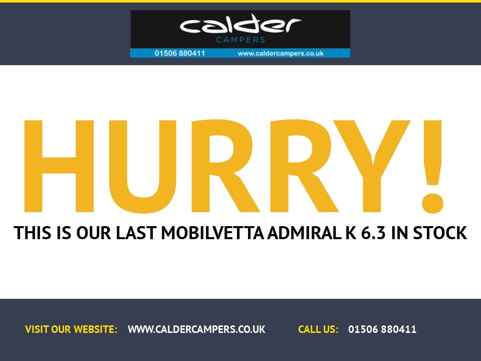 Mobilvetta Admiral K6.3 2026 new campervan is built on a Fiat chassis and comes with an automatic 140bhp engine with 2 berths and 4 travelling seats. The campervan layout includes two large single beds or one big double bed at the rear, a central kitchen and washroom, a front dinette and lounge area utilising the driver and passenger seats. This campervan is equipped with a Truma Combi 4 heating system, solar panel, 16" alloy wheels, cruise control and speed limiter, awning, winter pack and a comprehensive specification for year round touring.