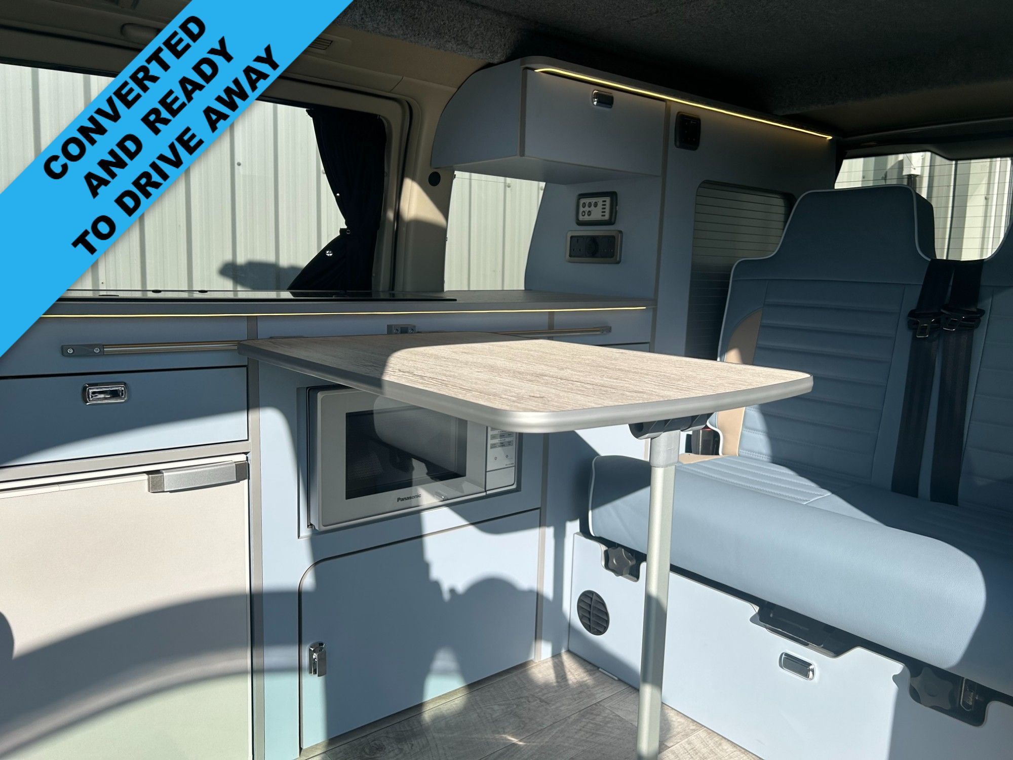 This van has been fitted with our standard full side conversion which includes Colour coded elevating roof, furniture kit including overhead locker, rock and roll bed system, elevating roof board with roof bed inc, Sink, 2 burner hob, fridge, removable water tank, Gas safe locker inc gas bottle,upholstery on bed to best match the front seats, Swivel passenger seat base, curtains, USB charging lights, Leisure battery, Split charging system, Power management system, External 240v hook up as well as many other features inc power points and various lighting configurations. As this vehicle was built for stock we have fitted every possible extra. We also change the speedo to MPH and the odometer to the correct UK mileage using the official certificate of mileage issued through the DVLA and BIMTA All of our vehicles are supplied with a 3 year warranty on the van and conversion MOT (where required) Valet Service Underseal HPI check We can offer excellent finance packages and we take part exchange. Fell free to contact us for any further information.