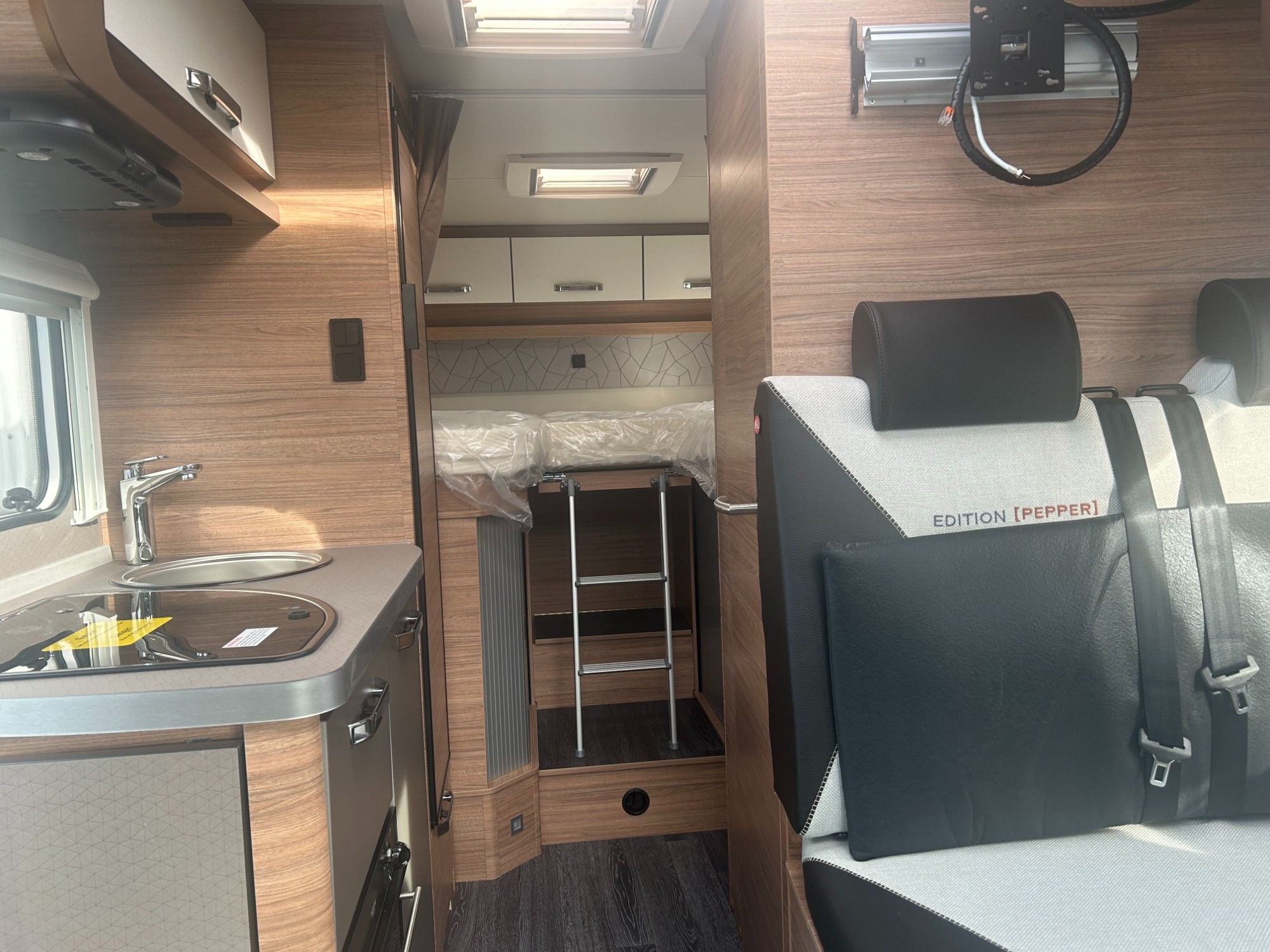 Weinsberg CaraCompact MB 640 MEG EDITION [PEPPER] – Mercedes 150BHP | 9-Speed Auto | 2 Berth Luxury Touring Van Experience German engineering and Mercedes performance with this Weinsberg CaraCompact MB 640 MEG EDITION [PEPPER] – a luxury 2-berth motorhome designed for couples who value style, comfort, and innovation. Built on the Mercedes-Benz chassis with the upgraded 150BHP engine , automatic gearbox, this [PEPPER] edition delivers power, precision, and touring pleasure. Driving & Performance Mercedes 150BHP Euro 6 engine – upgraded for effortless performance automatic transmission Front-wheel drive for agile handling Electric parking brake and Hold function DISTRONIC adaptive cruise control Active Brake Assist & Crosswind Assist Traffic Sign Assist & Distance Alert 10.25" MBUX multimedia system with navigation Driving Light Assist & Adaptive Brake Light Hill Start Assist and ECO Start-Stop Leather steering wheel and gear lever Multifunction steering wheel All-season tyres Winter Package for all-weather comfort Interior & Living Space Bright, spacious and beautifully designed – the CaraCompact offers premium comfort in a compact footprint. 212cm interior width – widest in its class Dinette with extendable/folding table Ergonomic bench seating for easy access Active Line 'Malabar' upholstery – fabric/leather-effect combo with decorative stitching Two single beds with option to convert to a large double Generous headroom – 190cm under the lifting bed, 200cm elsewhere Ambient lighting and quality finishes TV bracket pre-installed Ample storage throughout Kitchen Fully equipped and practical – ideal for home-style cooking: 3-burner gas hob Gas oven with grill 142L fridge/freezer with automatic energy selection Deep drawers and generous workspace Bluewater water filtration system for fresh, clean water Washroom Compact yet functional: Cassette toilet Vanity sink with mirror Separate shower cubicle Truma Combi 6E heating and hot water system Truma iNetX Master control Utilities & Electrical 95L fresh water tank 65L waste water tank 95Ah habitation battery with charger 230V SCHUKO sockets & multiple USB outlets Insect screen door Ambient lighting system Exterior Features Distinctive PEPPER Edition graphics and decals Mercedes-Benz chassis for superior ride and reliability Active Distance & Brake Assist systems Crosswind Assist for added stability Alloy wheels Driver & passenger airbags Compact, stylish design ideal for touring Summary The Weinsberg CaraCompact MB 640 MEG EDITION [PEPPER] is the ultimate 2-berth luxury touring motorhome. Combining Mercedes-Benz power and safety with Weinsberg's smart German design, it offers outstanding performance, efficiency and comfort. With its 150BHP engine, 9-speed automatic gearbox, modern interior and high-end equipment, this van delivers everything you need for effortless, enjoyable adventures. Contact us today to arrange a viewing or test drive – your perfect travel companion awaits.